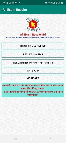 Disclaimer : In this application people can find there all education board results. We are not an official partner of the government or associated in any way with the government. The application is developed as a public service to help Bangladeshi residents to find there exam result. The application is not affiliated with any government services or person. The content of this application is available free on public domains. We do not have any copyright over the logo/content of any government websites.