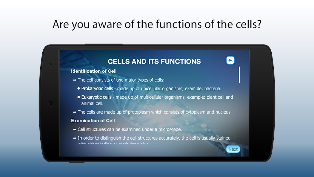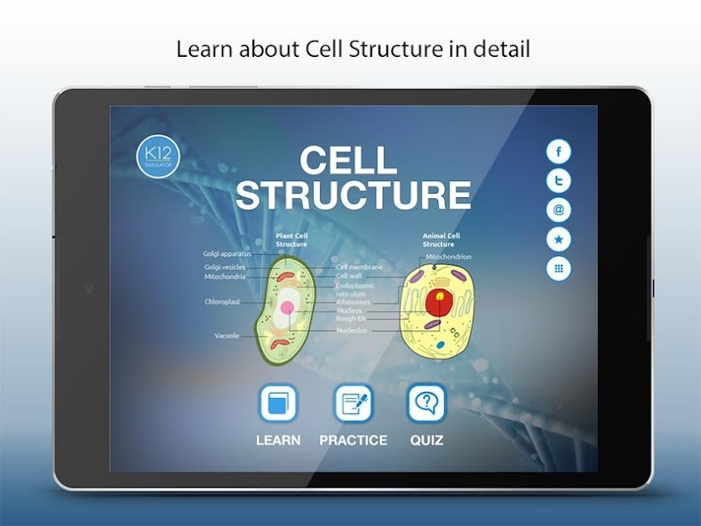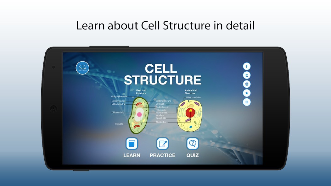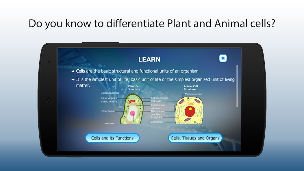 This educational application helps students understand and learn about Biology Cell Structure, plant cell structure, animal cell structure, human body organs, cell tissue, cell biology, organ system in an easy and engrossing way.