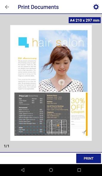 • Capture a document with your device camera, format, enhance, then save, ready to print