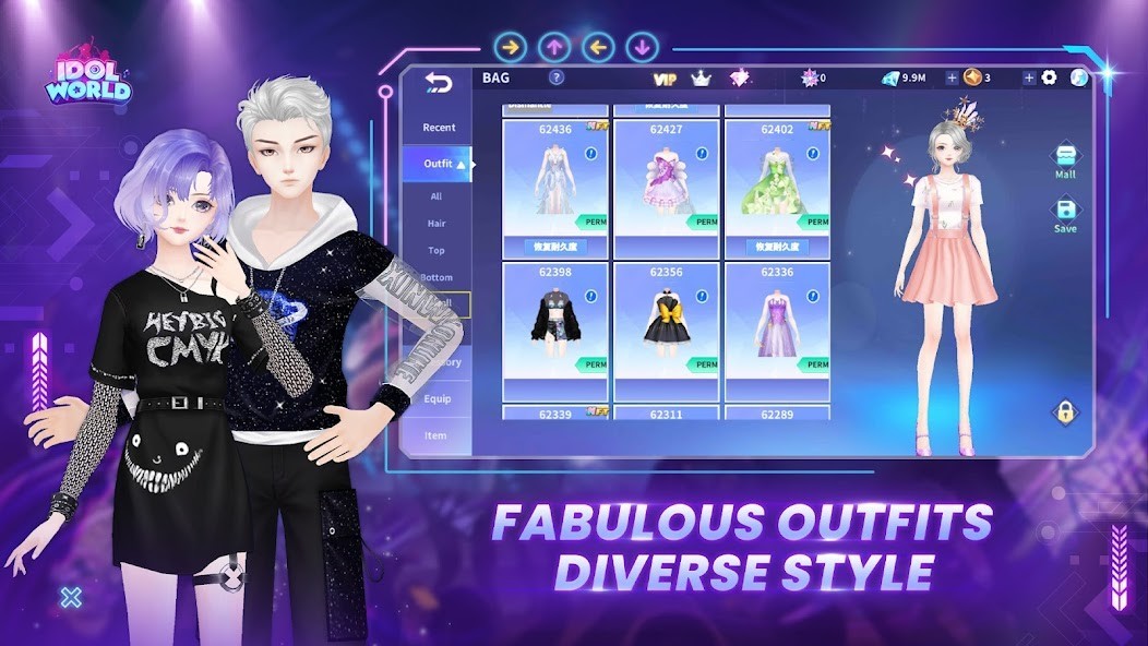 Idol World provides a massive fashion wardrobe with hundreds of different costumes and thousands of different accessories for players.