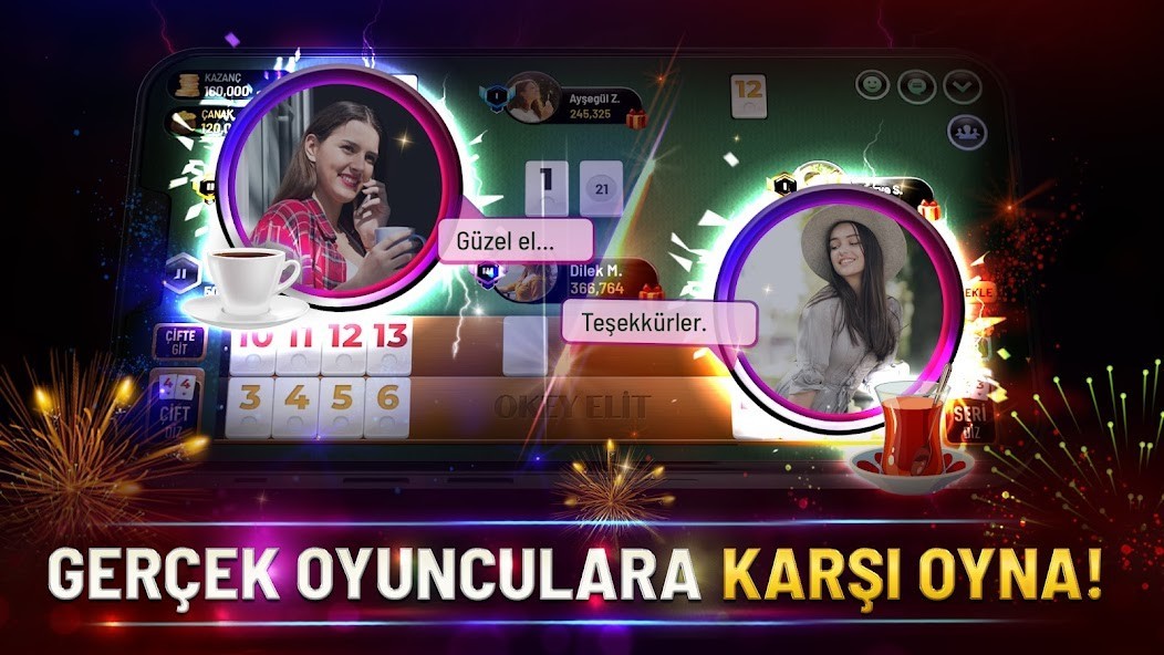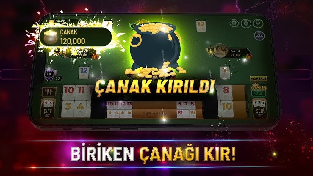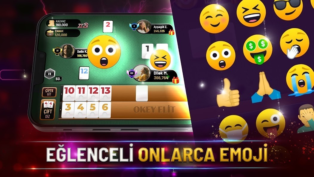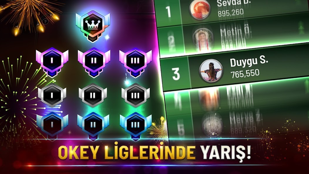 Okey is a game similar to Rummy for two to four players. Its target is to build sets of three or four of a kind or sequences. The game is played clockwise and the beginner has to discard his additional piece. Each player whose turn it is must take a piece, either the last open one or one from the next covered stack and he also has to discard one piece. As soon as the player whose turn it is has arranged his pieces in sets of three or four of a kindand/or sequences and has discarded one piece, he wins table points.