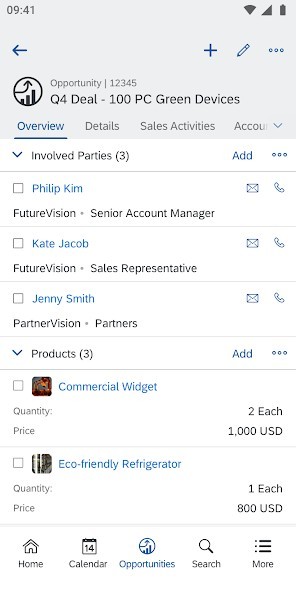 This app accesses the SAP Cloud for Customer solution and allows sales people to collaborate with their team, communicate better with their business network, and make informed decisions right from their Android Tablet.Key features of SAP Cloud for Customer for Android: