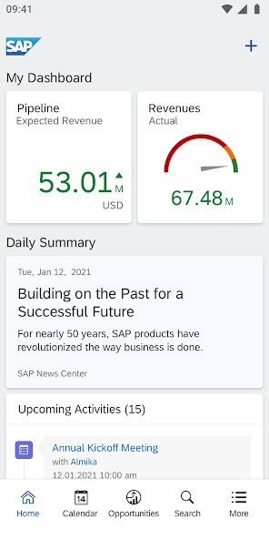 With the SAP Cloud for Customer for Android, you can gain real-time insights into your company’s ever-changing customer data anywhere and anytime.