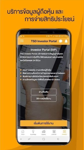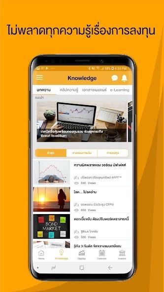 2. Knowledge: To navigate the investment knowledge at your convenience. You will be able to access on-line article and document, financial knowledge clip and SET e-learning and etc.