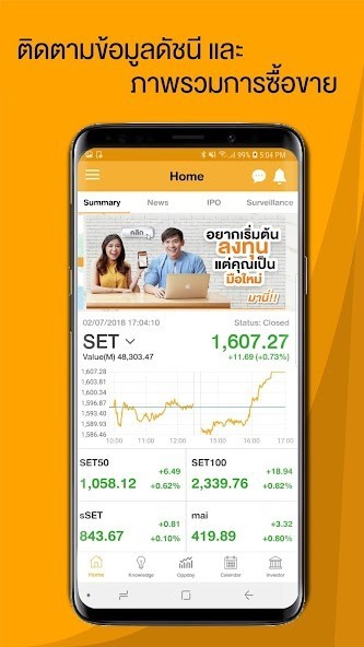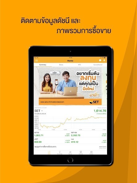 SET App or SET Application, developed by Stock Exchange of Thailand, invites you to a new access to investment information and knowledge. You will encounter with highlight investment resources and activities, seminar timetable, financial products and services from SET, check out our video clips at your convenience and navigate the world of investment knowledge.