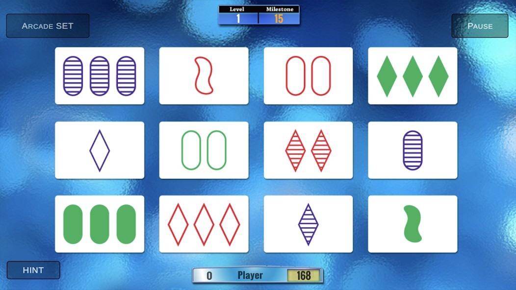 · Arcade SET challenges you to reach eh highest level possible by finding SETs more and more quickly before running out of time. The number of levels and the highest score achievable is unlimited.