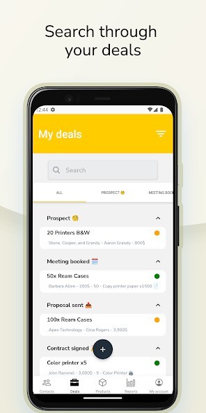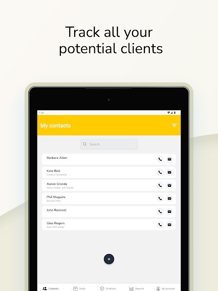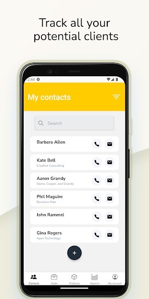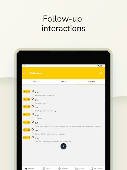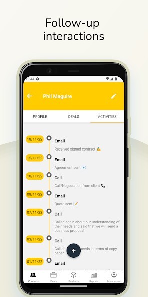 You can create new contacts or you can import them from your address book. Log all your interaction you have with each of your contact (calls, emails, meetings, …), so you don’t miss any sales opportunities.