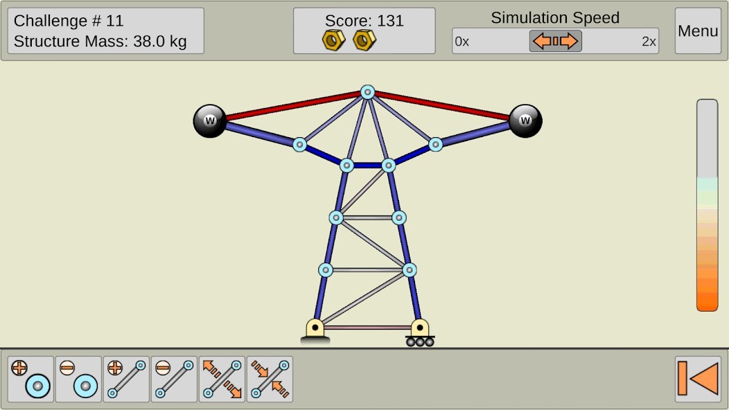 Designed by a true rocket scientist, Truss Me helps you learn to design truss structures while having fun! At each challenge, design trusses that are light and strong and you will earn precious golden nuts.Truss Me utilizes state of the art simulation techniques used by aerospace, mechanical, and civil engineers to provide the most realistic behavior for your trusses.