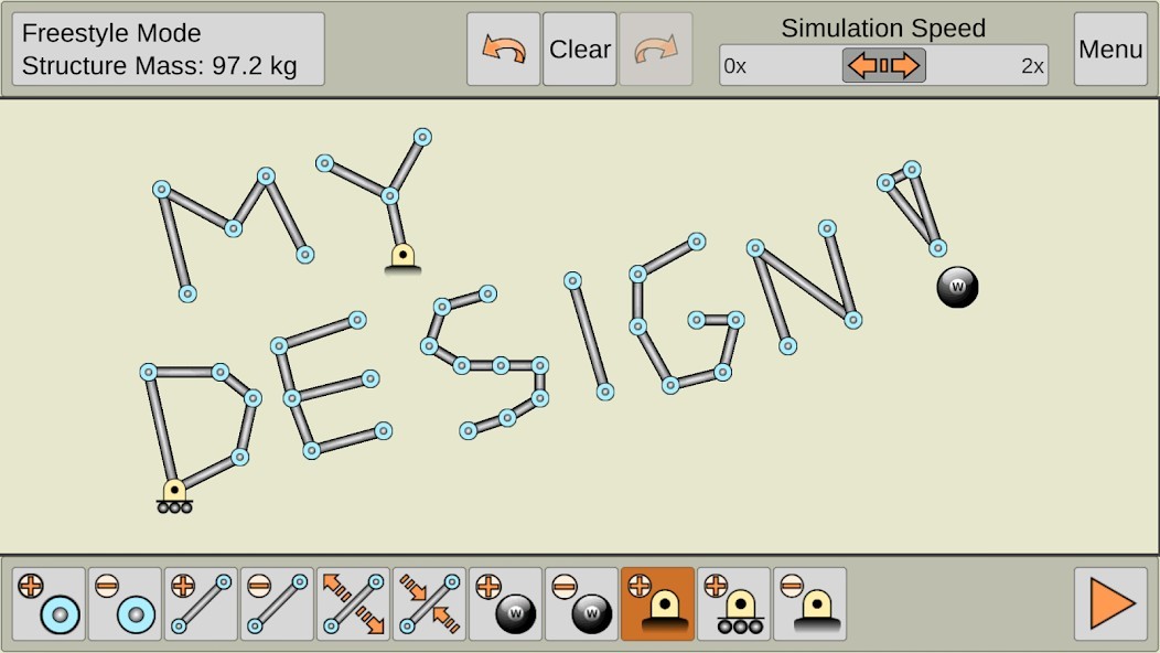 If well designed, your trusses will resist as they would in real life*. If your truss has flaws, the structure will fail realistically*!Truss Me works well with dynamic problems as well, so you can build from bridges, roofs, and cranes to impact problems involving crash of spacecrafts into the ground!